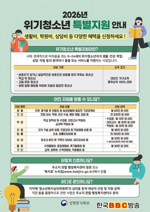 [Çѱ¹BBC¹æ¼Û ½ÃÈï½Ã=À̽ŵ¿±âÀÚ] ½ÃÈï½Ã´Â ¿À´Â 3¿ù 31ÀϱîÁö ¡®2026³â À§±âû¼Ò³â Ưº°Áö¿ø¡¯ ´ë»óÀÚ¸¦ ÁýÁßÀûÀ¸·Î ¸ðÁýÇÑ´Ù.