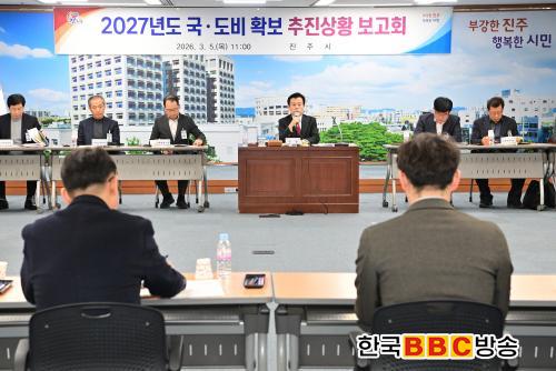 [Çѱ¹BBC¹æ¼Û °æ³²ÁøÁÖ=±è¸í¼ö±âÀÚ] ÁøÁֽô 5ÀÏ Á¶±ÔÀÏ ½ÃÀå ÁÖÀç·Î ºÎ½ÃÀå°ú ±¹¡¤°úÀå µî °£ºÎ °ø¹«¿øÀÌ Âü¼®ÇÑ °¡¿îµ¥ ¡®2027³âµµ ±¹¡¤µµºñ È®º¸¸¦ À§ÇÑ ÃßÁø »óȲ º¸°íȸ¡¯¸¦ °³ÃÖÇß´Ù.