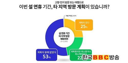 [Çѱ¹BBC¹æ¼Û´º½º=Á¤ÁöÀ± ±âÀÚ] °æ±âµµ¹Î 75%´Â ¼³ ¿¬ÈÞ ±â°£ °íÇ⠹湮 °èȹÀÌ ¾ø°Å³ª Ãë¼ÒÇßÀ¸¸ç, 68%´Â °¡Á·, Ä£Áö, ÁöÀΰúÀÇ »çÀû¸ðÀÓµµ °®Áö ¾ÊÀ» °èȹÀ̶ó´Â Á¶»ç°á°ú°¡ ³ª¿Ô´Ù°í ¹àÇû½À´Ï´Ù.