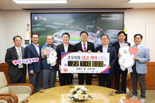 [Çѱ¹BBC¹æ¼Û °æ³²±èÇØ=³²±Ã¿µ±â±âÀÚ] ±èÇØ½Ã´Â ÁýÁßÈ£¿ì ÇÇÇØ¸¦ ÀÔÀº ÁֹεéÀ» µ½°íÀÚ °æ³²»çȸº¹Áö°øµ¿¸ð±Ýȸ¿¡ ¼º±Ý 2,271¸¸¿øÀ» Àü´ÞÇß´Ù°í 11ÀÏ ¹àÇû´Ù. Àü´Þ½ÄÀº Áö³­ 11ÀÏ ±èÇØ½ÃÀå½Ç¿¡¼­ È«ÅÂ¿ë ½ÃÀå°ú °æ³²»çȸº¹Áö°øµ¿¸ð±Ýȸ ¹ÚÀº´ö »ç¹«Ã³ÀåÀÌ Âü¼®ÇÑ °¡¡¦