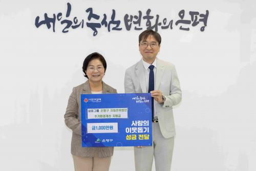[Çѱ¹BBC¹æ¼Û ÀºÆò±¸=À̽ŵ¿±âÀÚ] ¼­¿ï ÀºÆò±¸´Â Áö³­ 11ÀÏ »ïÇ¥±×·ìÀ¸·ÎºÎÅÍ ¡®ÀÚ¸³Áغñû³â ÁÖ°Åȯ°æ°³¼±À» À§ÇÑ¡¯ ÈÄ¿ø±ÝÀ» Àü´Þ¹Þ¾Ò´Ù°í ¹àÇû´Ù. »ïÇ¥±×·ì¿¡¼­ 1õ¸¸ ¿øÀ» »çȸº¹Áö°øµ¿¸ð±Ýȸ¿¡ ÁöÁ¤ ±âÅ¹ÇØ Àü´ÞÇß´Ù. Àü´Þ¹ÞÀº ÈÄ¿ø±ÝÀº ÀºÆò±¸ ÀÚ¸³Áغñû³â ¡¦
