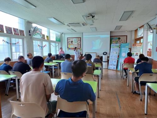 [Çѱ¹BBC¹æ¼Û °æ³²ÇÔ¾È=À̽ŵ¿±âÀÚ] ÇԾȱºº¸°Ç¼Ò´Â Áö³­ 13ÀÏ Àå¾ÖÀκ¹Áö½Ã¼³ÀÎ ´ë»ê¸é ¼ÒÀç Àå¾ÖÀκ¹Áö½Ã¼³ ¡®Çູµ¿»ê¡¯¿¡¼­ Á÷¿ø°ú ÀÔ¼ÒÀÚ 20¿© ¸íÀ» ´ë»óÀ¸·Î ¿Ã¹Ù¸¥ ¼Õ ¾Ä±â¡¤±âħ ¿¹Àý µî °¨¿°º´ ¿¹¹æ ±³À°À» Çß´Ù. À̹ø ±³À°Àº ¼Õ ¾Ä±â¡¤±âħ ¿¹ÀýÀÇ Á߿伺¡¦