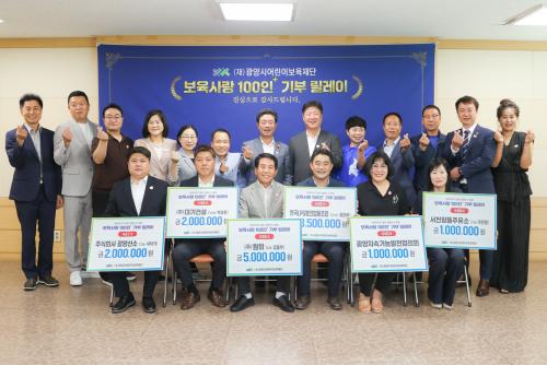 [Çѱ¹BBC¹æ¼Û Àü³²±¤¾ç=¹Ú±¤¿Á±âÀÚ] (Àç)±¤¾ç½Ã¾î¸°À̺¸À°Àç´Ü(ÀÌÇÏ Àç´Ü)Àº Áö³­ 8¿ù 21ÀÏ ±¤¾ç½Ãû ¸¸³²½Ç¿¡¼­ ¡¸º¸À°»ç¶û 100ÀÎ+ ±âºÎ ¸±·¹ÀÌ¡¹ ÈÄ¿ø±Ý ±âʽÄÀ» °³ÃÖÇß´Ù. Çà»ç¿¡´Â Á¤ÀÎÈ­ ±¤¾ç½ÃÀå, À̱¤¿ë Àç´Ü ÀÌ»çÀå, ±âŹÀÚ µî 20¿© ¸íÀÌ Âü¼®Çß´Ù. À̹ø ¡¦