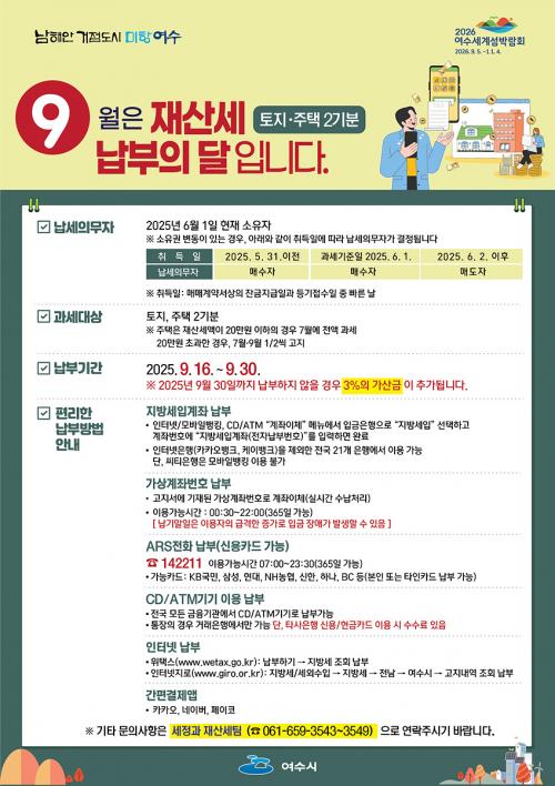 [Çѱ¹BBC¹æ¼Û ¿©¼ö=±è±â³² ±âÀÚ] ¿©¼ö½Ã(½ÃÀå Á¤±â¸í)´Â 2025³â 9¿ù Á¤±âºÐ Àç»ê¼¼(ÅäÁö, ÁÖÅà 2±âºÐ)·Î ÃÑ 414¾ï ¿ø(10¸¸ 4,543°Ç)À» ºÎ°úÇß´Ù°í ¹àÇû´Ù. ÀÌ´Â Áö³­ÇØ(404¾ï ¿ø)º¸´Ù 10¾ï ¿ø Áõ°¡ÇÑ ±Ô¸ð´Ù. ½Ã´Â À̹ø Áõ°¡ ¿äÀÎÀ¸·Î ÅäÁöºÐÀº ¡ã°³º°°ø½ÃÁö°¡ »ó½Â¡¦