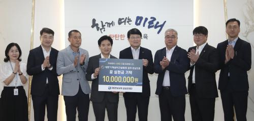 [Çѱ¹BBC¹æ¼Û Àü³²=À̽ŵ¿±âÀÚ] ´ëÇѱâ°è¼³ºñ°Ç¼³Çùȸ ±¤ÁÖ¡¤Àü³²µµÈ¸´Â 25ÀÏ Àü³²±³À° ²Þ½ÇÇöÀç´Ü¿¡ ²Þ ½ÇÇö±Ý 1,000¸¸ ¿øÀ» ±âŹÇß´Ù. 2012³âºÎÅÍ À̾î¿Â ±âŹÀ¸·Î ¿ÃÇØ 10ȸ°¸¦ ¸Â¾ÒÀ¸¸ç, ´©Àû ±âʱÝÀÌ 9,000¸¸ ¿ø¿¡ À̸¥´Ù. ±âʱÝÀº ÇлýµéÀÇ ¼ÒÁú°ú Àû¼ºÀ»¡¦
