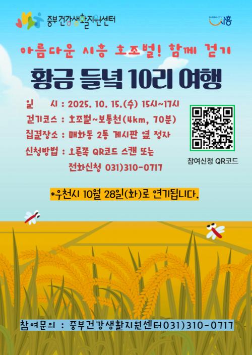 [Çѱ¹BBC¹æ¼Û ½ÃÈï½Ã=À̽ŵ¿±âÀÚ] ½ÃÈï½Ã´Â ¿À´Â 10¿ù 15ÀÏ ¿ÀÈÄ 3½ÃºÎÅÍ 5½Ã±îÁö È£Á¶¹ú ÀÏ´ë¿¡¼­ ¡®È²±Ý µé³è 10¸® ¿©Çà °È±â Çà»ç¡¯¸¦ ¿¬´Ù. Âü°¡ÀÚµéÀº ¸ÅÈ­µ¿ 2Åë °Ô½ÃÆÇ ¿· Á¤ÀÚ¸¦ Ãâ¹ßÇØ È£Á¶¹ú¿¡¼­ º¸Åëõ±îÁö ¿Õº¹ ¾à 4§° ±¸°£(¼Ò¿ä ½Ã°£ ¾à 70ºÐ)À» °ÉÀ¸¸ç¡¦