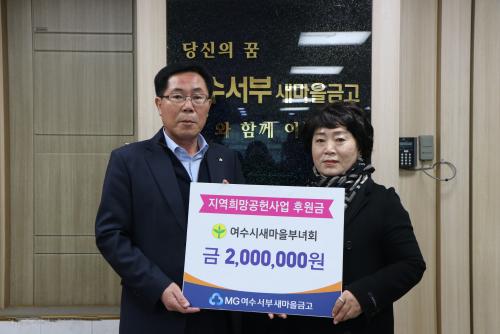 [Çѱ¹BBC¹æ¼Û ¿©¼ö=±è±â³² ±âÀÚ] ¿©¼ö¼­ºÎ»õ¸¶À»±Ý°í(ÀÌ»çÀå Á¤±æ¿ë)´Â Áö¿ª»çȸ¿ÍÀÇ »ó»ýÀ» ½ÇõÇϱâ À§ÇÑ Áö¿ªÈñ¸Á°øÇå»ç¾÷ÀÇ ÀÏȯÀ¸·Î »õ¸¶À»ÁöµµÀÚ¿©¼ö½ÃÇùÀÇȸ(ȸÀå À̱âÀü)¿Í ¿©¼ö½Ã»õ¸¶À»ºÎ³àȸ(ȸÀå ±è¿µÈñ)¿¡ ÃÑ 400¸¸ ¿øÀÇ ±âºÎ±ÝÀ» Àü´ÞÇß´Ù. À̹ø ±âºÎ´Â¡¦