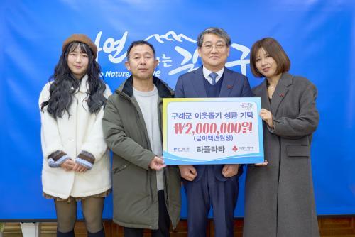 [Çѱ¹BBC¹æ¼Û ±¸·Ê=À±¼ºÁÖ ±âÀÚ] ±¸·Ê±ºÀº 12¿ù 31ÀÏ(¼ö) ±¸·ÊÀ¾¿¡ À§Ä¡ÇÑ Ä«Æä ¶óÇöóŸ(´ëÇ¥ ±è¹Ì¶ó)°¡ ¿¬¸»À» ¸Â¾Æ °ü³» ¾î·Á¿î ÀÌ¿ôÀ» µ½±â À§ÇÑ ¼º±Ý 2¹é¸¸ ¿øÀ» ±âŹÇß´Ù°í ¹àÇû´Ù. À̹ø ±âŹÀº Áö¿ª»çȸ¿¡ ´ëÇÑ ³ª´®À» ²ÙÁØÈ÷ ½ÇÃµÇØ ¿Â ¶óÇöóŸÀÇ Áö¼ÓÀûÀÎ ¡¦
